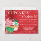 Convite de festas lunático & do divertimento do feriado do Natal do cupcake da troca. Um convite temático do grande feriado que seja para uma troca do cupcake em vez de uma troca do biscoito com cocktail! O feriado das características 2 decorou cupcakes em cor-de-rosa, vermelho, branco e os verdes com floco de neve polvilham na parte superior. O fundo deste convite é um divertimento e um vermelho brilhante com uma beira branca do floco de neve toda em torno dos lados do convite. Lunático e divertimento, este convite de festas da troca do cupcake do Natal é certo ser um coletor do olho!