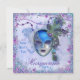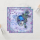 Uma bela máscara de mascarada de penas de pavão com pavões, brilho e impressão de bambo em detalhes elegantes. Perfeito para o seu temático evento de Ano Novo. Bonito brilho púrpura e azul pastel e as estrelas rebordam sobre um fundo de cor aquosa macia com miçangas e sotaques de pérolas. A parte traseira tem plano de fundo e borda correspondentes. Todo o texto em frente e verso está pronto para você personalizar com as informações de sua parte.