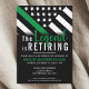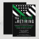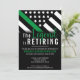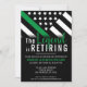 Esta design de aposentadoria possui uma bandeira militar com listras pretas e brancas, e uma fina faixa verde de linha também. O texto "A lenda está se aposentando" fica acima do nome do sargento aposentado, capitão, soldado, tenente ou general.