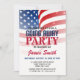 Patriótico Moderno Indo Embora O Convite. Design apresenta a bandeira dos EUA e os detalhes da festa no fundo azul e frontal e as estrelas no fundo. Perfeito para ir embora, voltar para casa ou festa de aposentadoria. Modelo pode ser modificado.