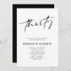 Convite de festas Minimalista de Script Moderno aniversário de 30 anos... Nosso convite de festas na moda preto e branco apresenta um script de escrita manual moderno em chic, gráfico de "trinta" acima do seu texto de convite personalizado. O fundo do convite é preto elegante. Todo o texto (exceto o gráfico de "trinta") pode ser facilmente revisado com seus próprios detalhes no modelo de personalização.