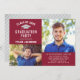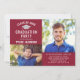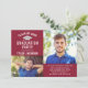 Anuncie seu formando em estilo com este moderno, mas elegante convite festa de formatura com a imagem de boné de formando prateado. Design apresenta um fundo vermelho de marrom profundo com dois espaços para fotos mais velho, cinzas prateadas e texto branco que podem ser personalizados com as informações do formando e detalhes da festa, e um simples padrão de faixas diagonais brancas na parte traseira da placa. As cores do texto e do plano de fundo podem ser personalizadas.
