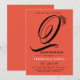Celebre o marco da sua princesa em estilo com este chic Quince Años | Convite de festas de Quinceañera. O design moderno apresenta um ousado "Q" inicial preto, começando a palavra quinceañera em uma elegante e clássica fonte, acentuada por uma típica e mínima tiara, colocada contra um nítido fundo vermelho-alaranjado para um olhar jovem e vibrante. A parte de trás mostra a mesma cor brilhante para um design coeso. Todo texto é totalmente personalizável, permitindo que você personalize todos os detalhes para a comemoração de 15 da sua filha. Uma mistura perfeita de elegância e energia para um marasmo moderno. Peça o seu hoje e crie um momento para se lembrar!