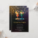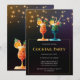 Procurando um convite único e elegante para sua festa? Confira este convite personalizável com design de cocktail intrincado, de aspecto colorido de papel e luzes de cordas no fundo. Imprima os seus convidados com este convite.
