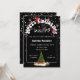 Convite de festas de Natal Moderno e Preto (disponível agora para downloads instantâneos), para comemorações de natal. Típica moderna de Arte da Rua do Grafite Curvado, com "Feliz Natal", exibida em uma inscrição no estilo retrô branco da neve decorada com chapéu de Natal e boneco de neve isolado em fundo vermelho com flocos de neve. Clique no botão editar/personalizar para personalizar este design com seu texto ou nome pessoal. O texto, o endereço e o nome podem ser facilmente personalizados de acordo com as suas necessidades.