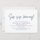 Anuncie a sua alegria para sempre em estilo com o nosso belo e moderno e belo design azul-marinho (Sip, sip, hooray!) para celebração de chás de panela. Com seu design sofisticado, mas lúdico, este convite certamente define o tom de um evento inesquecível. O cartão de convite apresenta um design moderno de escrita minimalista, acrescentando um toque de elegância do eterno à sua celebração. Projetado por TeeshaDerrick