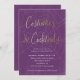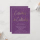 O cartão moderno e elegante do modelo do convite de festas do Dia das Bruxas que caracteriza um fundo roxo sujo e uma Web de aranha com mão rotulou o ouro do falso para script o texto que diz "trajes & cocktail." O título do convite diz que "se junte nos se você ousa para um partido spooktacular do Dia das Bruxas." A informação do partido é facilmente customizável.