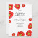 Um convite de aniversário floral feminino e moderno para uma festa de jardim de aniversário com papoilas de cor vermelha para convidar seus entes queridos a celebrar com você. O texto é totalmente editável, assim como o retrato no verso.