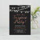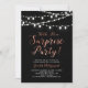 Celebre um dia especial com este convite de festas surpresa moderno! Este design apresenta uma tipografia de na moda com texto e cordas de luz. Você pode personalizar a cor de fundo.
