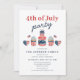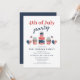 Vermelho Moderno Personalizado Branco E Azul 4 De Julho Convite de festas.
