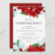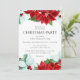 Festa de Natal O Modern Corporate Holiday Party Invances apresenta um design de Natal com um quadro floral de cor d'água de poinsetos vermelhos e brancos, Holly e Mistura em vermelho festivo, branco e verde sobre fundo branco. Adicione as suas informações personalizadas aos seus Convites de Férias de Natal da empresa. Basta editar o texto nas caixas de texto fornecidas. No verso está uma pesada vermelha sólida. Projetado por feriados do Evco www.zazzle.com/store/evcoholidays