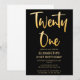 Introduzir um novo fundo preto simples, elegante, convite de festas aniversário de 21 anos, com o texto dourado da tipografia escrita à mão "vinte e um". Personalize esta placa de modelo, adicionando as informações de sua própria parte.