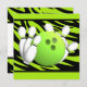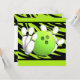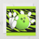 Celebrar aniversários ou qualquer ocasião divertida com uma festa de boliche. Personalize o texto deste divertido convite de festas verde brilhante e riscado de zebra.