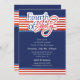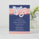 Comece a comemoração do dia 4 de julho com nosso convite de festas moderno, vermelho, branco e azul americano. O convite para a festa de churrasco do dia da independência apresenta uma banda com tipografia de 4 de julho com fundo azul. Convidado popular para uma festa de piscina, churrasco, festa de fogos de artifício, bolachas ou festa de 4 de julho.