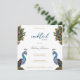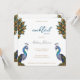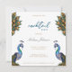 Com as suas penas brilhantes e a magnífica plumagem, este elegante pavão representa força e confiança com o perfeito equilíbrio de delicada mas marcante compostura. Convide convidados para o seu Partido Cocktail com este convite elegante e formal e elegante para o pavão! Completamente personalizável! Artesanato original pintado à mão em aquarela.