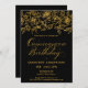 Convite Partido Quinceanera Dourado Rosa Preto Floral