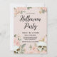 Um convite exclusivo para o Dia das Bruxas que combina florais cor-de-rosa macio com sotaques crônicos, criando uma elegante e assustadora vibe para o seu evento especial. (Trabalho de arte Gerado por AI)