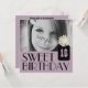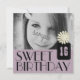 Está aqui um grande convite de festas para sua filha teenaged das pessoas de dezesseis anos! Preto, branco e uma luz bonito - o roxo ou o malva colorido, estilo na moda convidam com rotulação retro e chique antiquado. O Tag preto de coordenação com o número 16 e uma flor branca simples terminam-no fora agradàvel e ajudam-no a equilibrar a foto do offset. Transfira arquivos pela rede sua própria fotografia favorita de seu adolescente (olhares grandes em preto e branco!) e personalize o verso com seus detalhes do partido.