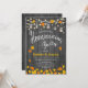 Concurso Rustic Housewarming com padrão de madeira de cinza escura e luzes de fadas de cordas. Apresenta Mason Jars e outono. Perfeito para uma festa de estilo rústico. Envie-me uma mensagem se precisar de mais personalização.