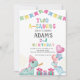 Convite Partido segundo aniversário Dois Dinossauro Azul
