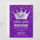 Convite de aniversário Real para menino ou menina. Design elegante em prata brilhante e roxo real. Cartão de convite engraçado bonito com "dois" na fonte do script com confetti. Perfeito para uma festa de segundo. Envie-me uma mensagem se precisar de mais personalização.