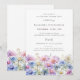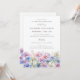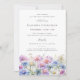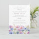 Os imperadores de aquarela criam uma borda floral no fundo deste convite de aniversário surpresa. As flores púrpura, rosa, azuis e brancas do pastel macio são o fazer floral do mês de setembro este é o tema perfeito para o seu aniversário de setembro.