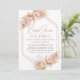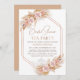 Chá de panela geométrico Boho Floral Tea Convite de festas Faux molho rosa de ouro armado convite de festas boêmio chá de panela com dois tons naturais, blush arranjos florais com grama pampas e bule branco. O título é uma imagem falsa rosa dourada que pode ser removida.