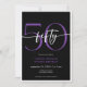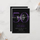 Moderno e chic, este convite de aniversário combina preto clássico e branco com sotaques de roxo brilhante. É um design mínimo é um design simples e divertido para celebrar o aniversário do marco. Criado pela imprensa simplesmente de farmácia.