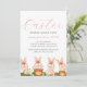 Certifique-se de que sua Páscoa e caça ao ovo são um sucesso com este adorável convite para aquarelas! Esta design apresenta quatro coelhos bonitos segurando ovos e cestos coloridos decorados. As cores são vibrantes e alegres, com uma mistura de pínus claros e escuros bege e e verde. O dorso apresenta um grande ovo de Páscoa. Simplesmente personalize isso com seus próprios detalhes de seu evento, de quem são os hospedeiros e quando e onde ocorrerá a caça ao brunch e aos ovos. Com este design fofo, seus convidados estarão lá e se divertirão muito!