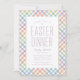 Convide amigos e familiares para Jantarem Páscoa com este doce e simples convite pastel. Com o arco-íris de xadrez gingham e o tipo roxo, este convite Páscoa tem uma sensação perfeitamente brilhante. O texto pode ser personalizado para qualquer celebração. Fornecimentos de Páscoa e decoração correspondentes também disponíveis na coleção de Lea Delaveris Design. Também disponível como download de convite para Páscoas digital.