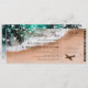 Convite de ingresso para casamento em destino tropical com litoral arenoso, ondas do oceano, folhas de palmeira românticas, luzes de corda, um modelo de casamento moderno e uma seção de rsvp. POR FAVOR, NOTE: Seus convidados precisarão cortar a parte do rsvp do convite e enviá-la de volta para você em um envelope separado (não fornecido). A seção de RSVP tem aproximadamente 3x4 polegadas.