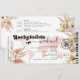 Convite de passagem de embarque para festa de despedida de solteira tropical com um fundo branco simples, grama pampas em aquarela rústica e flores, um código QR para você excluir ou substituir pelo seu, e um modelo de itinerário de fim de semana de despedida de solteira editável e completo que é fácil de personalizar.