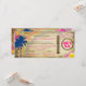 Passagem de embarque vintage da PixDezines para um casamento no destino. Palmeiras gêmeas, arco-íris e leis de hibisco e plumeria coloridos, em pergaminho falso. O fundo pode ser excluído, você pode adicionar qualquer esquema de cores a ele. Copie e cole para mais flores. Direitos autorais © 2012 PixDezines.com™ e PixDezines™ em zazzle.com