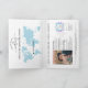 Destino de Casamento do Mapa do Mundo Moderno e Elegante, como passaporte com um monograma de crista floral de cor azul empoeirado