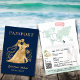 Convite Passaporte Código QR Mapa Mundial Praia Azul Marin