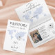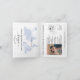 Convite de Destino de Casamento com um mapa mundial moderno e elegante, como um passaporte. Mapa mundial em aquarela azul lavanda