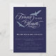 Marinho azul de convite ao funeral com pássaros soprando Forever em nossos Corações em lindas fontes maravilhosas. Adicione uma foto ao outro lado. Marinho azul, um convite para funeral de pássaro personalizado com uma foto no verso.