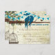 Pássaros do Amor Teal Sentados em Casamentos de Árvores Veem Mais Convites Vintage