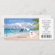 Um convite de casamento divertido, mas na moda, num estilo de passagem de embarque/passagem para casais que se casam no estrangeiro, no Havaí, que é mostrado numa silhueta de mapa branco numa praia genérica e palmeira, com doces corações vermelhos, silhueta de avião e forma cardíaca branca a girar. O verso do cartão de embarque é fácil de personalizar com seus detalhes pessoais de casamento