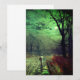 Cartão com a pintura de John Atkinson Grimshaw, Uma Noite enluarada (1880). Uma lua assombrosa preenche o céu noturno da Inglaterra vitoriana enquanto uma mulher está em uma rua ladeada por árvores. Em frente a ela há um prédio iluminado. Um grande presente para os fãs do Romantismo e da Inglaterra vitoriana.