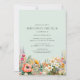 Convites bonito e simplistas de brunch de aniversário com ilustrações florais de aquarela. Cor azul-esverdeada pálida na frente com um lado oposto.