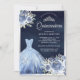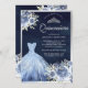 Convite Pastel Blue Floral Marinho Silver Quinceanera