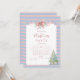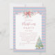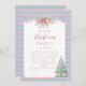 A pastel Christmas invitation featuring watercolor pink and blue stripes, a festive bow, and a decorated Christmas tree with gifts beneath. The soft candy-colored palette creates a sweet and cheerful holiday mood, perfect for elegant yet playful celebrations.