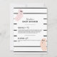 Um Chá de fraldas de Halloween não tão assustador! Pastel cor-de-rosa e pêssego, Um Pequeno Boo está a caminho do Chá de fraldas de Halloween com um design especial que inclui a Fralda Raffle e Livros para Bebê num fundo de faixa branca e negra.