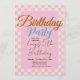 Convite Pastel Pink Checkered Birthday Party