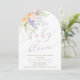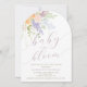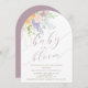 Pastel Primavera Floral Arch Baby em Bloom Chá Invitation com letra moderna de escrita de caligrafia.