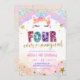 Convite Pastel Rainbow Magical Unicorn 4th Birthday