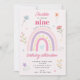 Convite Pastel Rainbows Rapariga Flores Selvagens Corações