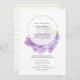 Violeta de aquarela - convite de casamento floral lilás com uma estrutura geométrica dourada personalizável para suas especificidades de evento.
