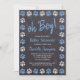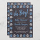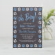 Ah, garoto! Convide seus amigos e família para comemorar a chegada de seu novo bebê com este quadro rústico com pata azul e branca imprime convites para chuveiros de bebês, acessórios de festas e presentes. Esta design rústica, porém simples e mínima é perfeita para qualquer chá de fraldas temático de cachorro ou filhote. Esta coleção será favorita entre todos os amantes e amantes de os animais de cães. COPYRIGHT © 2020 Judy Burrows, Black Dog Art - Todos Os Direitos Reservados. Pata do quadro-negro imprime o convite para Chá de fraldas do Blue Boy